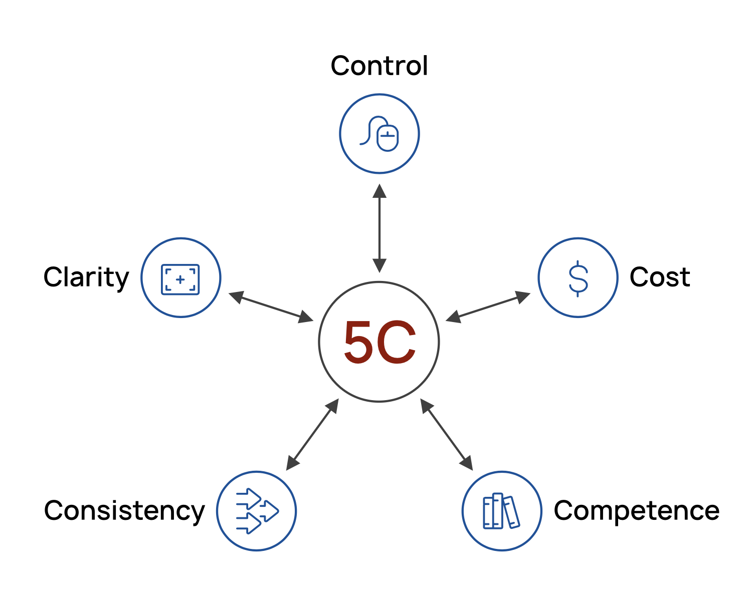 Model 5C to operacyjny filar BrandX Media — pięć kluczowych zasad, które definiują nasz sposób pracy nad projektami. To podejście zbudowane z myślą o Klientach, którzy oczekują czegoś więcej niż samej obsługi, a którzy poszukują struktury, odpowiedzialności, przejrzystości oraz mierzalnego wpływu na wynik.